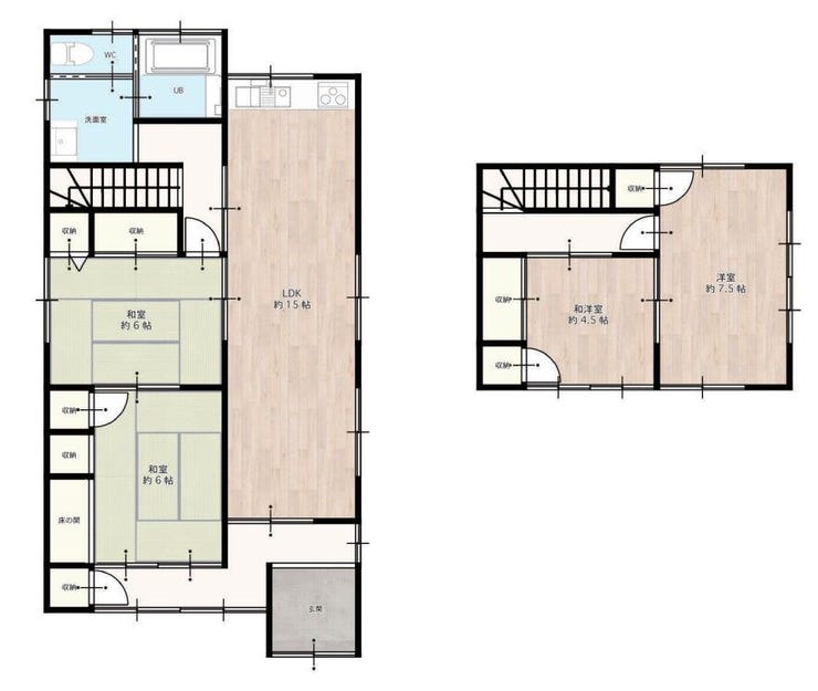 4LDKの木造2階建て♪(LDK約15帖・1階2部屋・2階2部屋)